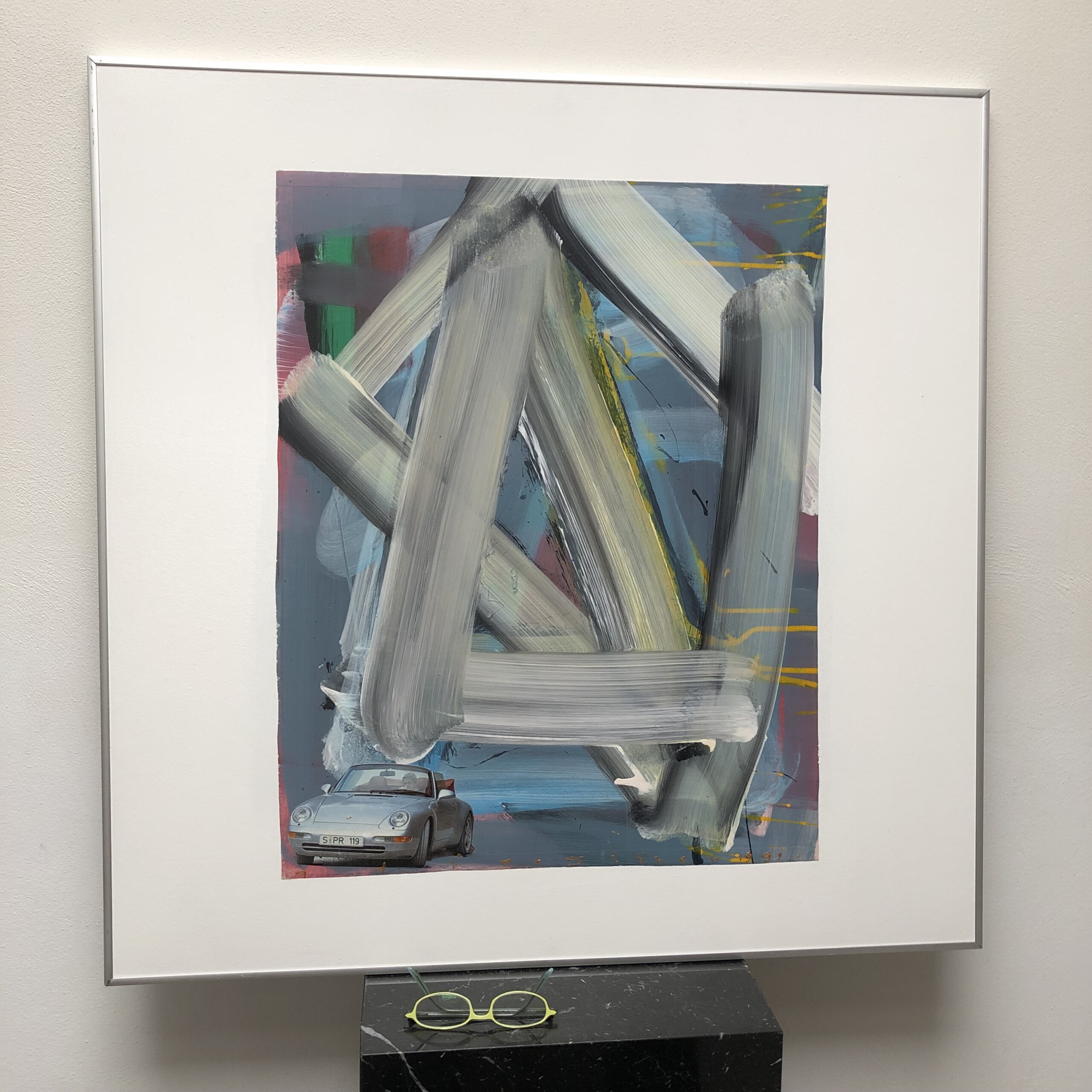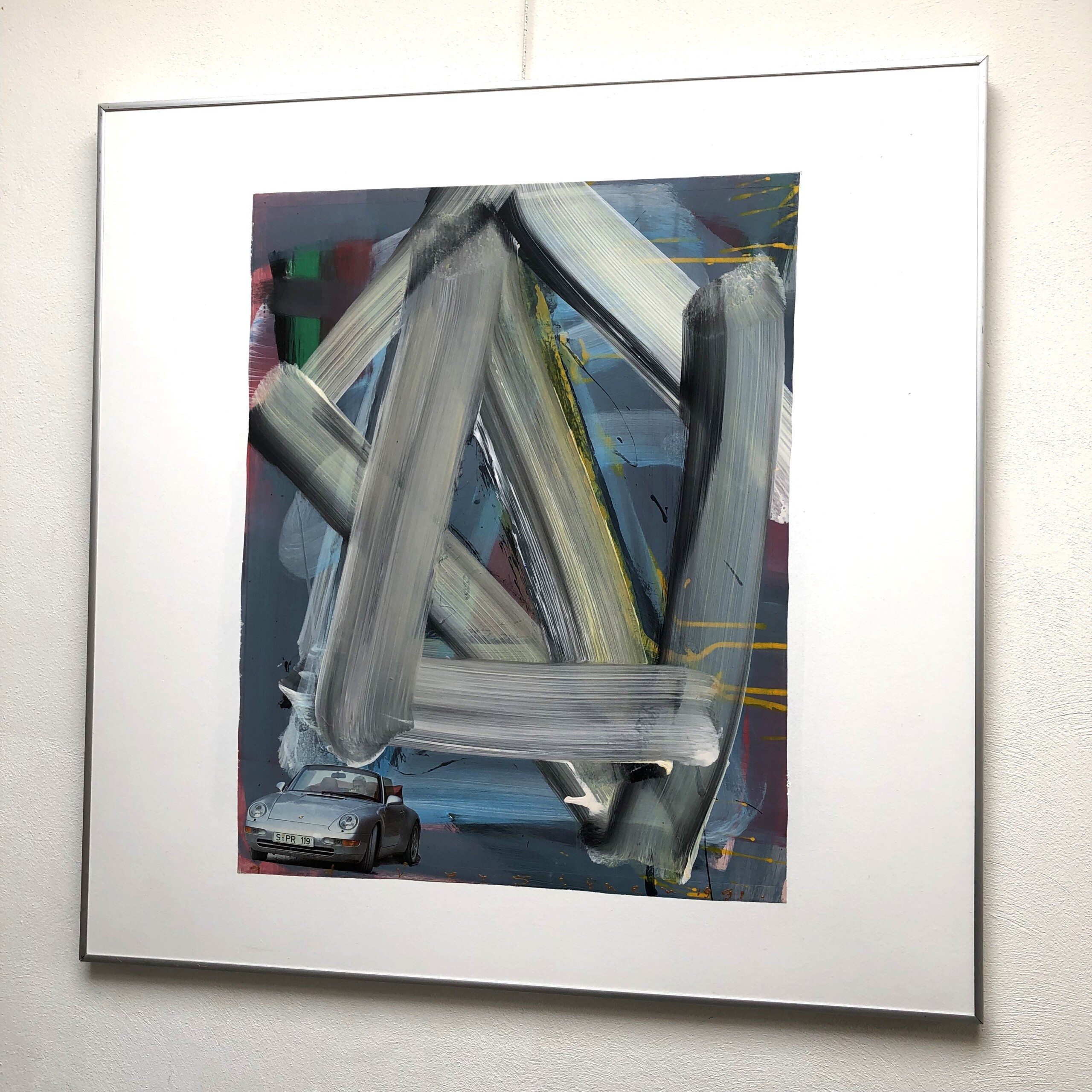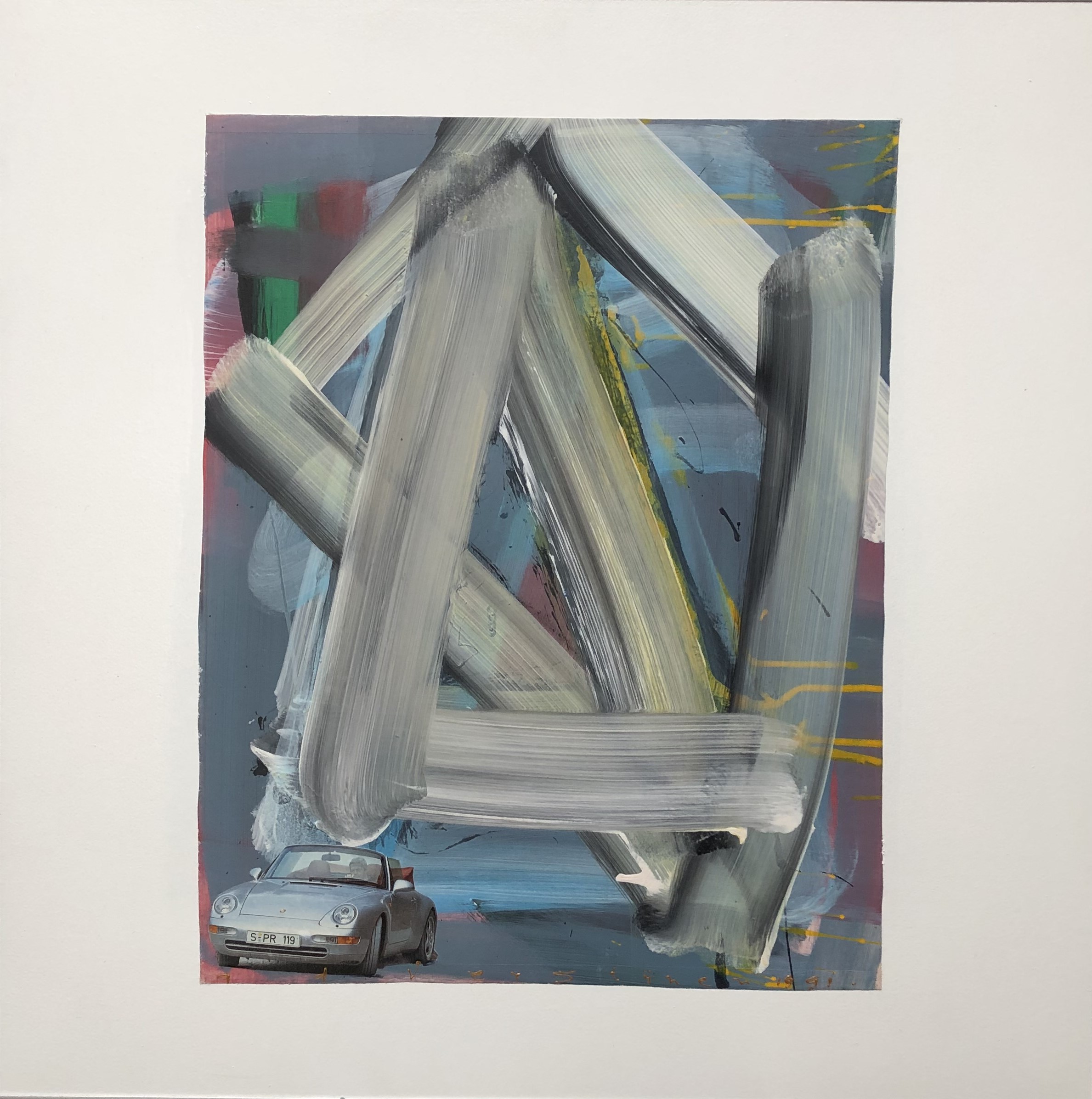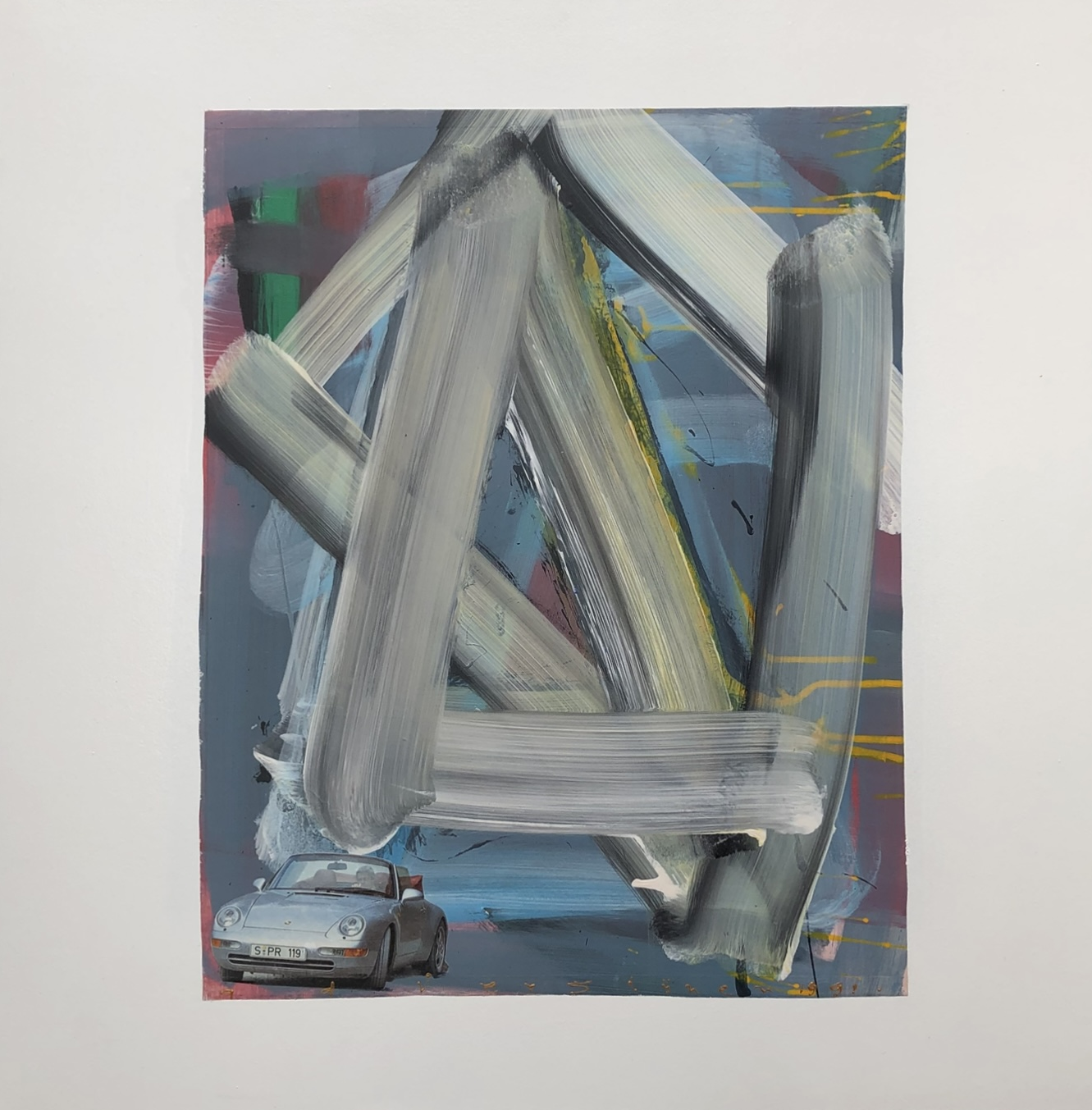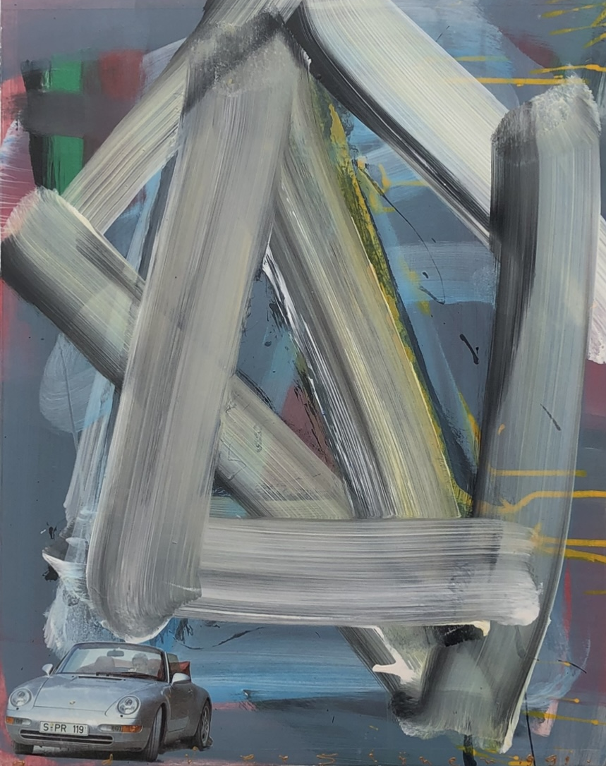 Porsche – Een werk uit de serie experimentele collages abstract met classic-cars centraal.